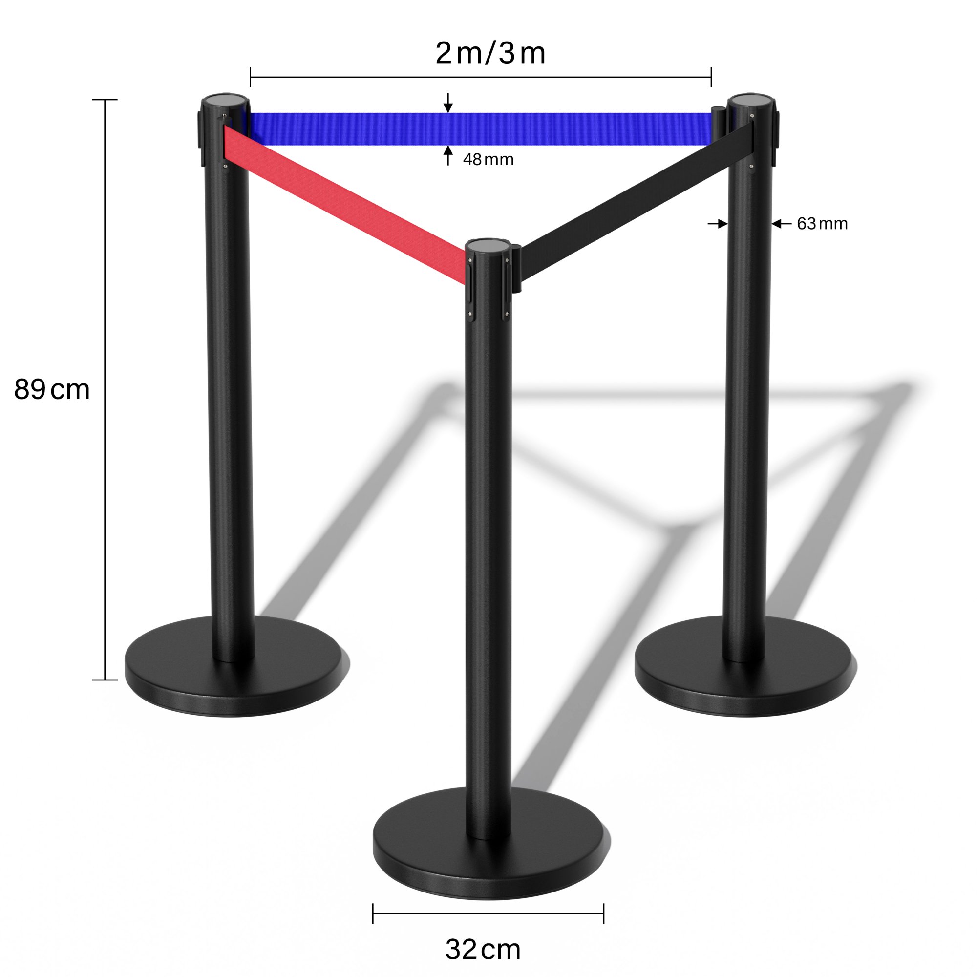 You can change the distance between posts by adjusting the length of the belt.